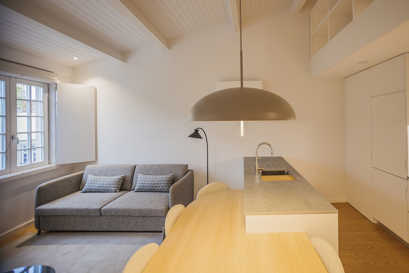 This project started with a ruined building located on the iconic Rua do Biscaínhos, in the heart of Braga’s historic centre. Despite the building’s deteriorated state, the original facade was carefully preserved, maintaining the typical architectural identity of the area and ensuring continuity within the historic urban fabric.